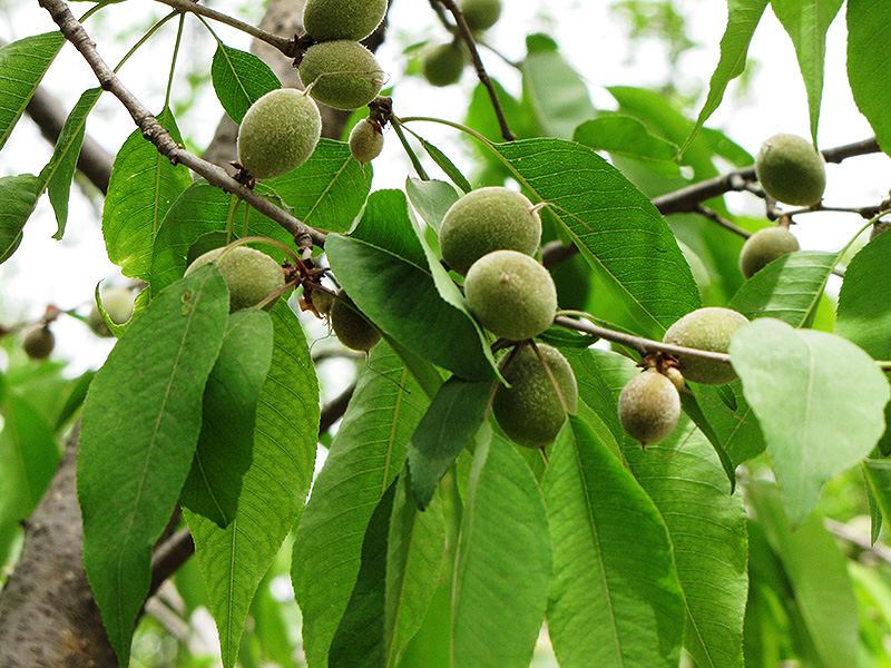 David's Peach is covered in stunning clusters of fragrant white flowers along the branches from late winter to early spring, which emerge from distinctive rose flower buds before the leaves. It has dark green foliage with light green undersides. The serrated narrow leaves do not develop any appreciable fall color.