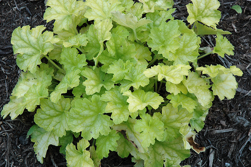 Carnival Limeade Coral Bells will grow to be about 12 inches tall at maturity extending to 18 inches tall with the flowers, with a spread of 14 inches. When grown in masses or used as a bedding plant, individual plants should be spaced approximately 10 inches apart. Its foliage tends to remain dense right to the ground, not requiring facer plants in front. It grows at a medium rate, and under ideal conditions can be expected to live for approximately 10 years. As an evegreen perennial, this plant will typically keep its form and foliage year-round.