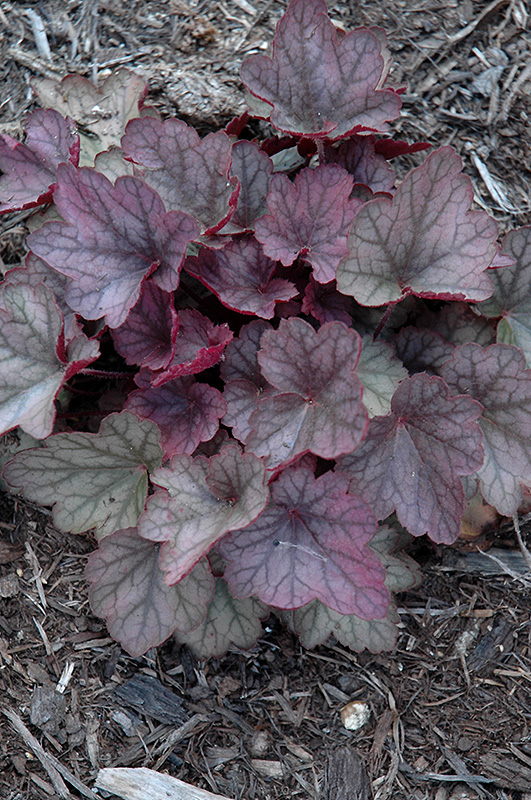 Carnival Rose Granita Coral Bells will grow to be about 12 inches tall at maturity, with a spread of 14 inches. When grown in masses or used as a bedding plant, individual plants should be spaced approximately 10 inches apart. Its foliage tends to remain dense right to the ground, not requiring facer plants in front. It grows at a medium rate, and under ideal conditions can be expected to live for approximately 10 years. As an evegreen perennial, this plant will typically keep its form and foliage year-round.