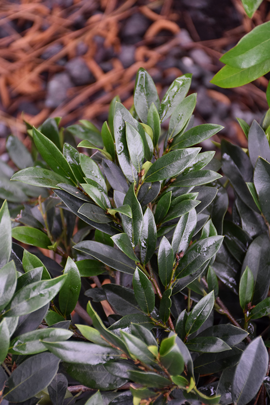 An attractive evergreen plant with emerging light green foliage that matures to deep green and glossy; in spring, lovely maroon flowers emerge along the older branches; very elegant when massed together or as an accent shrub