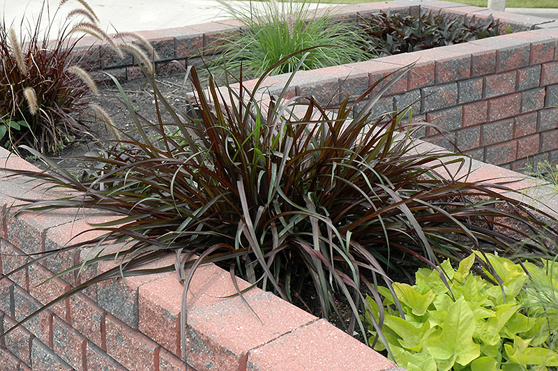A durable ornamental grass grown for its burgundy-green foliage that eventually matures to deep purple, forming a gracefully arching mound; will not flower in areas with frost; ideal for massing or containers