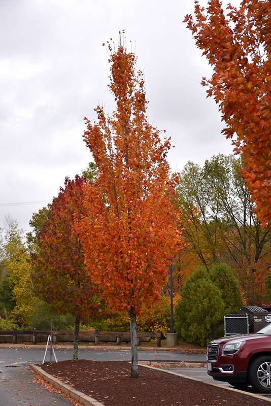 A very distinctive hybrid maple with a narrow, upright growth habit, fast growing, golden to orange fall color; excellent choice for the smaller home landscape or for articulation, tends to broaden with age