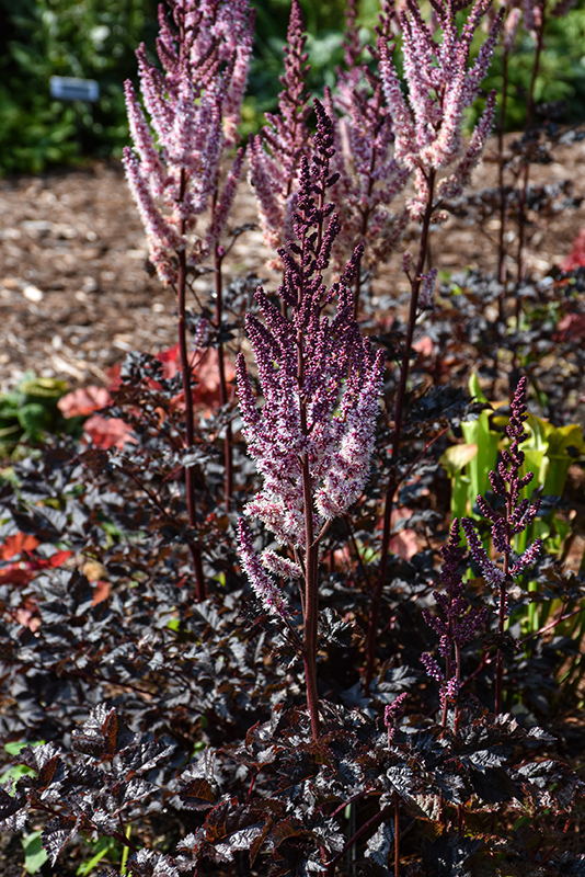 Dark Side Of The Moon Astilbe is an herbaceous perennial with an upright spreading habit of growth. Its relatively fine texture sets it apart from other garden plants with less refined foliage.