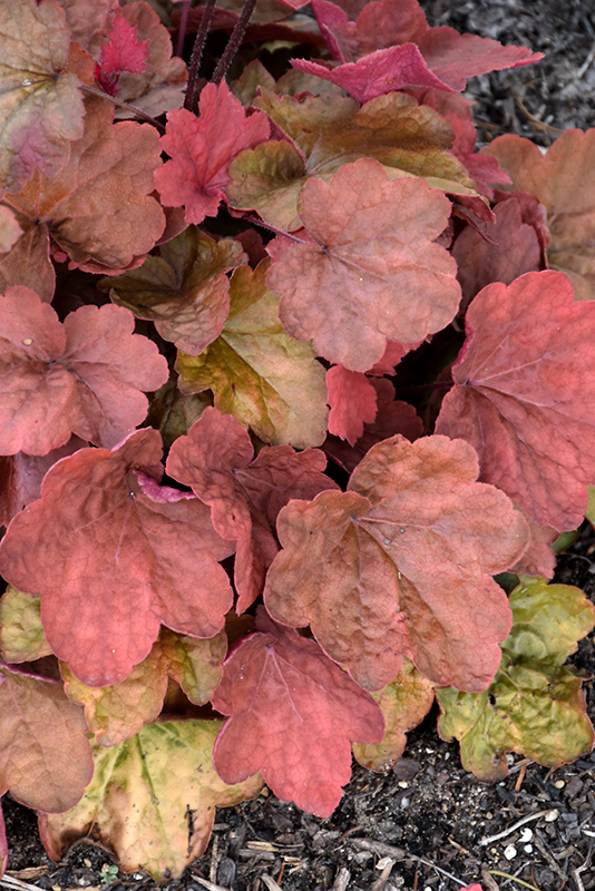 Carnival Cinnamon Stick Coral Bells will grow to be about 12 inches tall at maturity, with a spread of 14 inches. When grown in masses or used as a bedding plant, individual plants should be spaced approximately 12 inches apart. Its foliage tends to remain dense right to the ground, not requiring facer plants in front. It grows at a medium rate, and under ideal conditions can be expected to live for approximately 10 years. As an evegreen perennial, this plant will typically keep its form and foliage year-round.