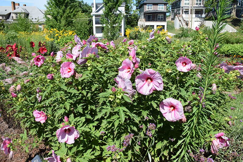 Summerific® Lilac Crush Hibiscus will grow to be about 6 feet tall at maturity, with a spread of 5 feet. When grown in masses or used as a bedding plant, individual plants should be spaced approximately 4 feet apart. It grows at a fast rate, and under ideal conditions can be expected to live for approximately 5 years. As an herbaceous perennial, this plant will usually die back to the crown each winter, and will regrow from the base each spring. Be careful not to disturb the crown in late winter when it may not be readily seen!