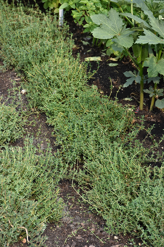 English Thyme will grow to be about 12 inches tall at maturity, with a spread of 12 inches. When grown in masses or used as a bedding plant, individual plants should be spaced approximately 12 inches apart. Its foliage tends to remain dense right to the ground, not requiring facer plants in front. It grows at a medium rate, and under ideal conditions can be expected to live for approximately 10 years. As an evegreen perennial, this plant will typically keep its form and foliage year-round.
