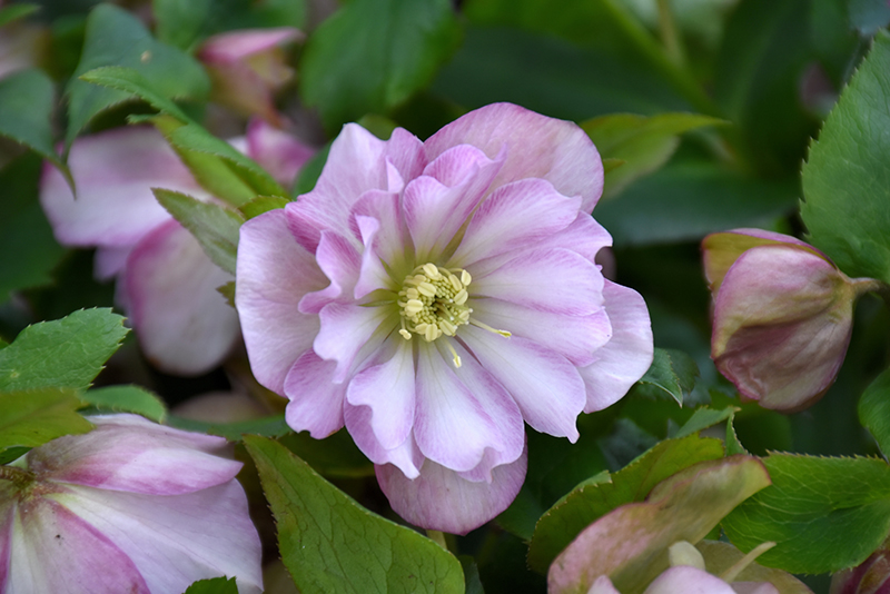 An easy to grow selection producing romantic double blooms in shades of light pink; blooms emerge in late winter and early spring above attractive green foliage; ideal for shade gardens; great as cut flowers or in borders and beds