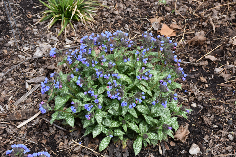 Pink-A-Blue Lungwort will grow to be about 16 inches tall at maturity, with a spread of 24 inches. When grown in masses or used as a bedding plant, individual plants should be spaced approximately 20 inches apart. Its foliage tends to remain dense right to the ground, not requiring facer plants in front. It grows at a medium rate, and under ideal conditions can be expected to live for approximately 10 years. As an herbaceous perennial, this plant will usually die back to the crown each winter, and will regrow from the base each spring. Be careful not to disturb the crown in late winter when it may not be readily seen!