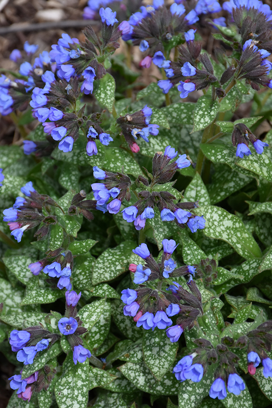 Pink-A-Blue Lungwort features delicate clusters of blue bell-shaped flowers at the ends of the stems from mid to late spring, which emerge from distinctive pink flower buds. Its attractive narrow leaves remain green in color with distinctive silver spots throughout the season.