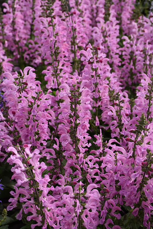 Fashionista® Moulin Rouge Sage has masses of beautiful racemes of fragrant pink tubular flowers with rose calyces rising above the foliage in late spring, which emerge from distinctive rose flower buds, and which are most effective when planted in groupings. The flowers are excellent for cutting. Its tomentose narrow leaves remain green in color throughout the year.