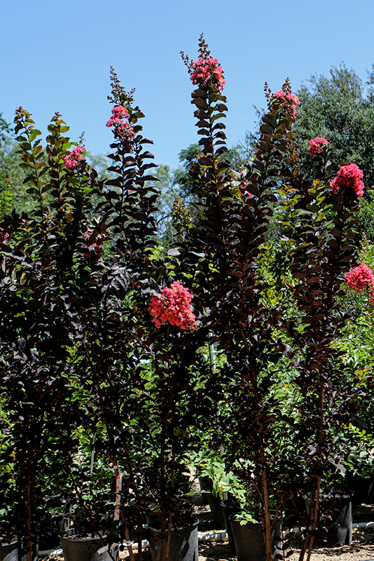 Thunderstruck™ Coral Boom™ Crapemyrtle is clothed in stunning panicles of coral-pink frilly flowers with red overtones at the ends of the branches from early summer to early fall. It has attractive burgundy foliage with hints of black. The oval leaves are highly ornamental and turn dark red in fall.