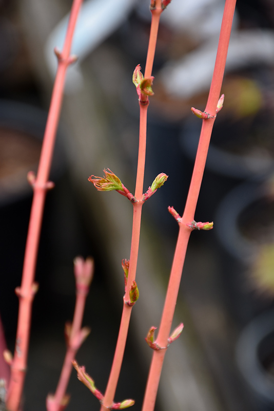 Bihou Japanese Maple is primarily valued in the landscape for its interesting and distinctive form. It has attractive forest green foliage with hints of chartreuse which emerges pink in spring. The serrated pointy palmate leaves are highly ornamental and turn an outstanding gold in the fall. The smooth yellow bark and coral-pink branches are extremely showy and add significant winter interest.
