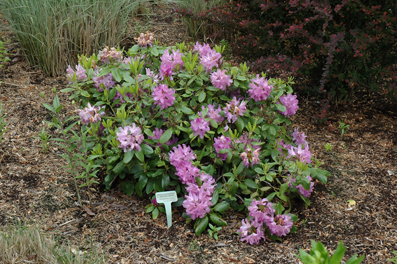 Large, glossy evergreen leaves on an upright shrub; amazing clusters of lavender-pink flowers in late spring; prefers well-drained, cool, highly acidic and organic soil, use plenty of peat moss when planting