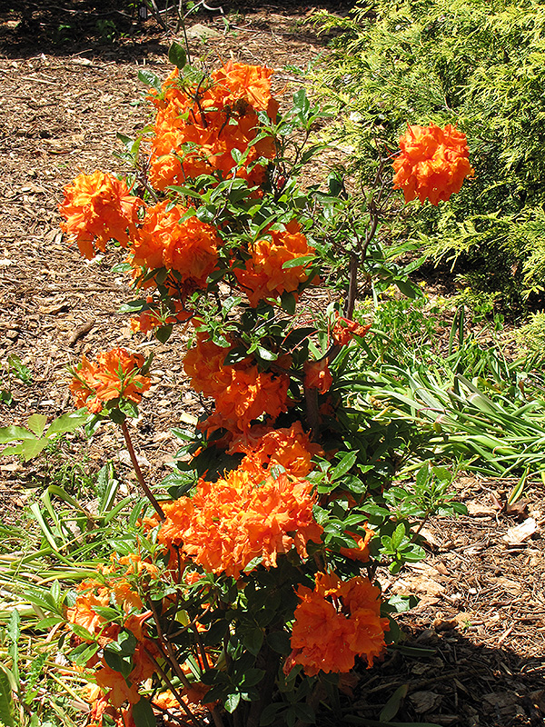 A stunning variety with bright orange and yellow blooms that cover airy open branches in mid spring; showy when massed in a border or as a garden accent; absolutely must have well-drained, highly acidic and organic soil