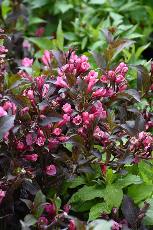 Shining Sensation™ Weigela features showy clusters of pink trumpet-shaped flowers with buttery yellow anthers along the branches in late spring. It has attractive burgundy deciduous foliage which emerges coppery-bronze in spring. The glossy pointy leaves are highly ornamental but do not develop any appreciable fall color.